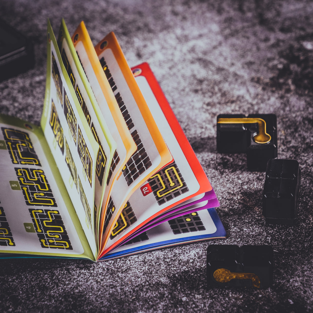 - Set Includes: 1 compact game board with transparent lid, 10 double-sided puzzle pieces and 1 booklet with 120 challenges and solutions.