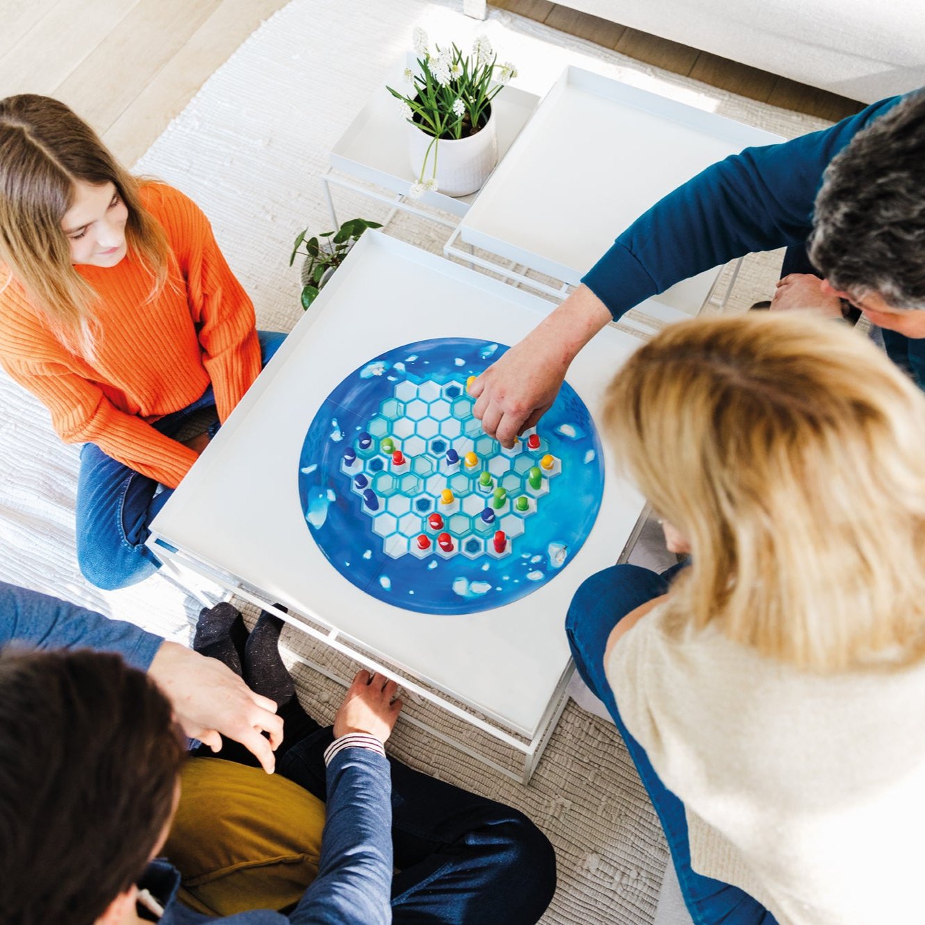 - Set Includes: large colorful circular gameboard, 24 penguins in 4 colors, ice blocks.