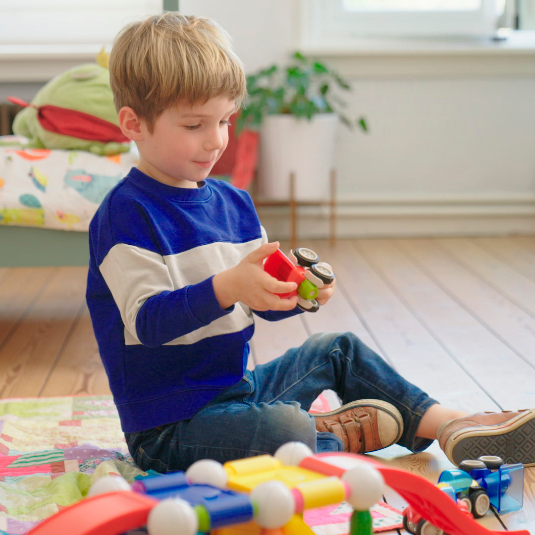 Have fun building incredible structures and vehicles with SmartMax! SmartMax allows children to explore magnetism safely. The oversized pieces are specifically designed for handling by young kids as they learn about the effects of magnetic attraction and repulsion, while older children will have fun using the pieces to construct towers, bridges and other creations. They magnets are strong enough to carry up to 60 times their weight! The Basic Stunt set is a great combination of SmartMax fun: building both structures and vehicles! Includes 46 pieces and a guide to build models! Extension sets are available separately.